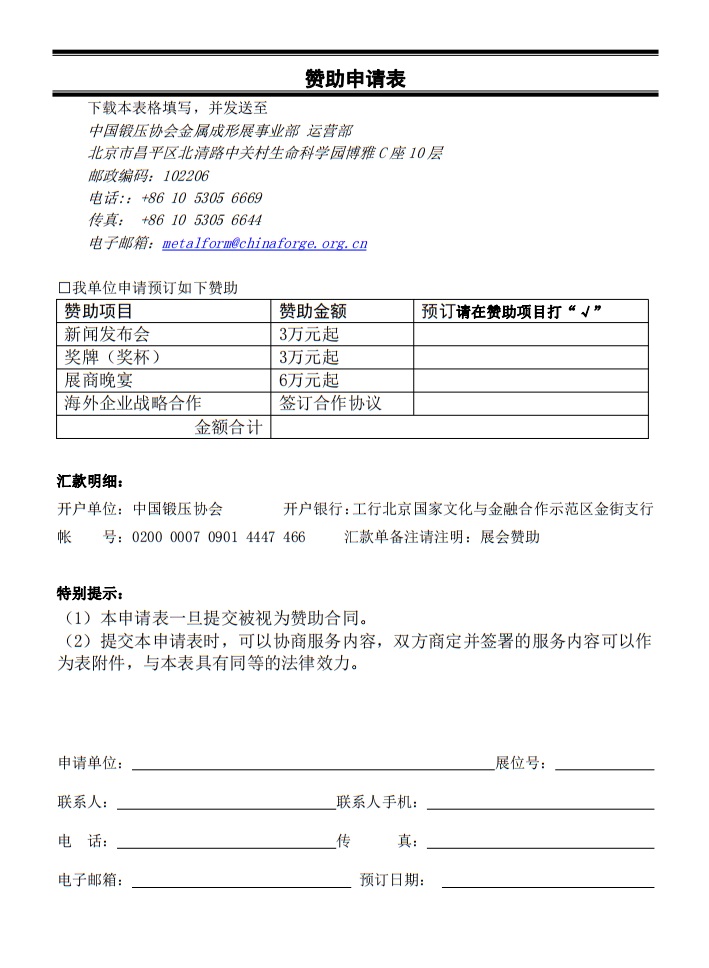 通過這樣的合作不但有利于合作企業(yè)的廣泛深入的宣傳,也有利于與中國鍛壓協(xié)會共同建立中國國際金屬成形展覽會這個教育與展示的基地。